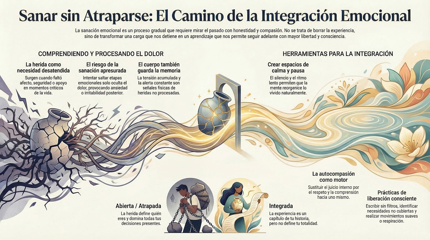 El objetivo de sanar no es vivir sin cicatrices, sino vivir sin que las cicatrices dirijan cada paso. Las experiencias difíciles forman parte de la vida y pretender eliminarlas por completo suele generar más tensión que alivio.